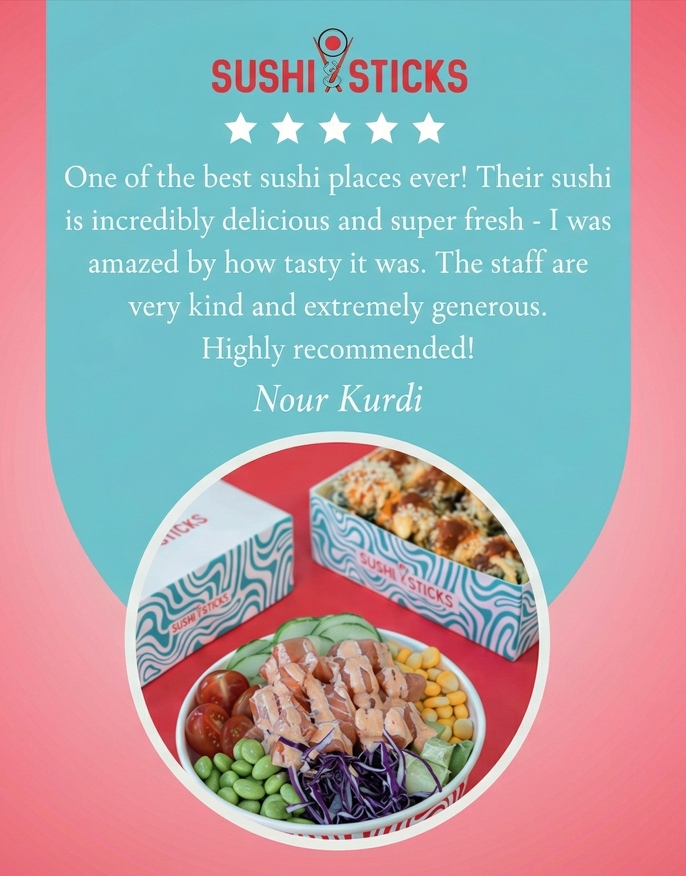 Whether you're grabbing a quick lunch, enjoying dinner with friends, or ordering for the office — Sushi & Sticks is built around freshness, craft, and a modern feel that keeps things light and satisfying.